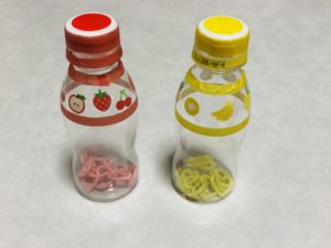 シンプルにボトルにチェーンリングを入れるだけでも楽しめますが、チェーンリングもカラフルに色がついているので、色のインプットもできるように工夫してみました。
