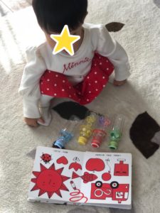 たまたまかもしれませんが「どんな色がすき?」の歌で、赤の時に娘から赤いボトルを渡されて、とってもびっくりしました。