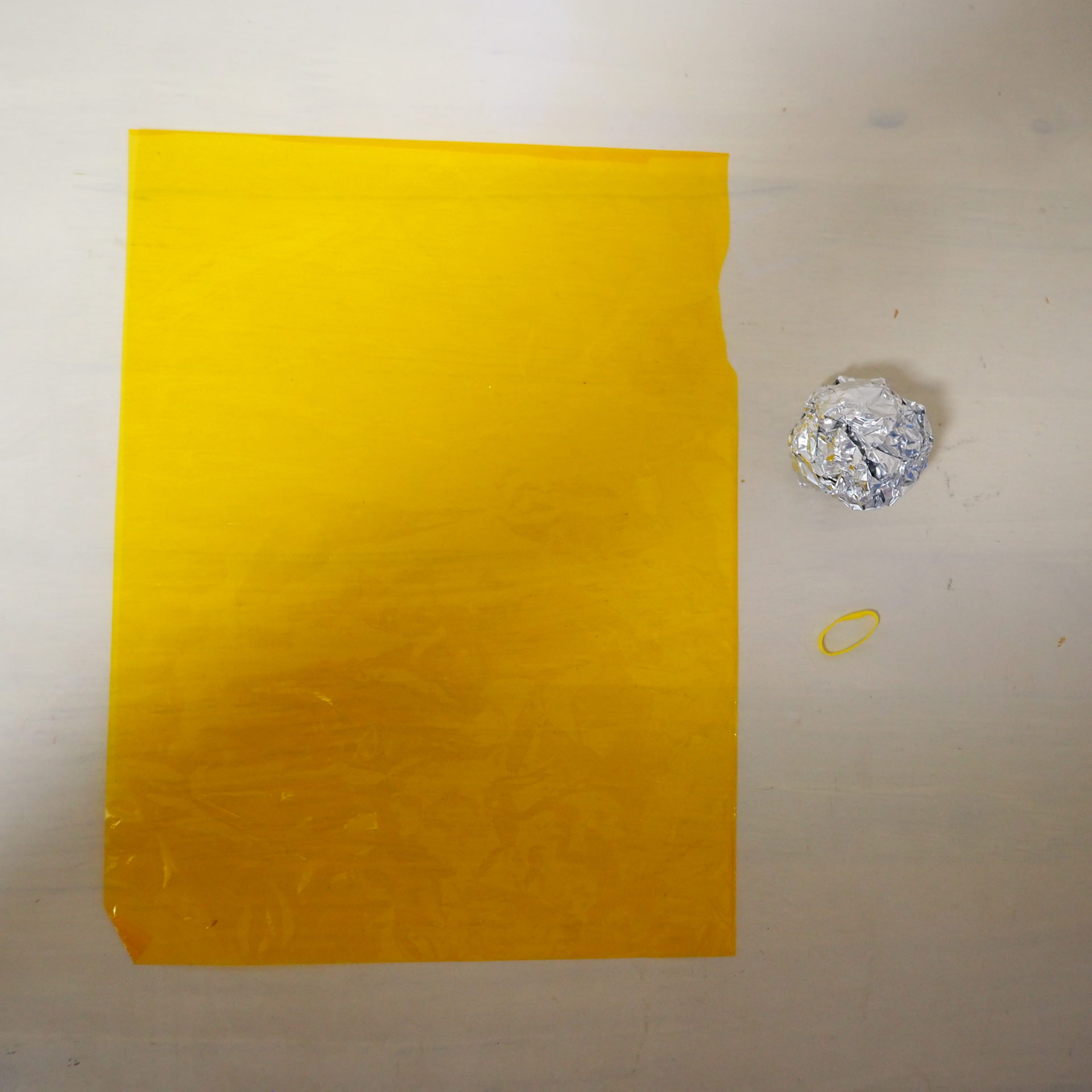 ③アルミホイルをカラーセロハンで包んで、髪ゴムで止めれば完成!