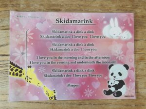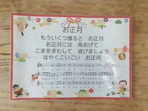 今月の歌は日本語の童謡、英語の歌が1つずつあって、月初のレッスンで歌詞プリントが配布されます。